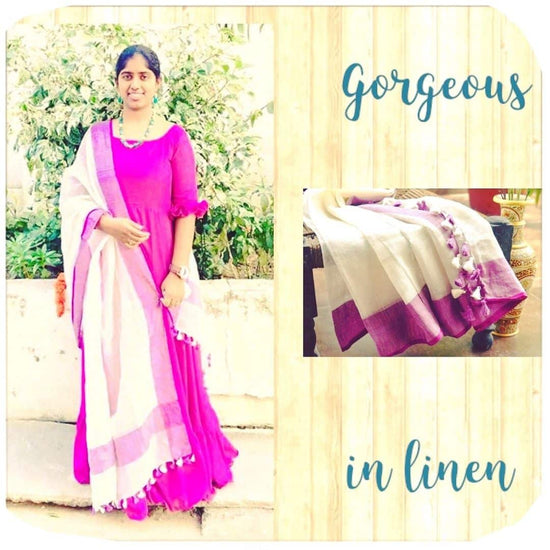 Purchased a white lavendar linen dupatta. It looked fantastic and the material is nice. Would love to shop with them again.