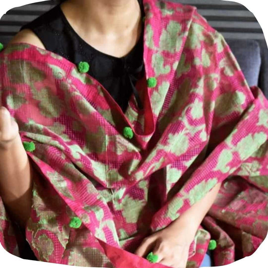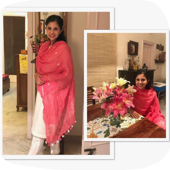 Thank you for this amazing dupatta. An exclusive piece which got me so many compliments. Especially love the contrasting pom-poms.
