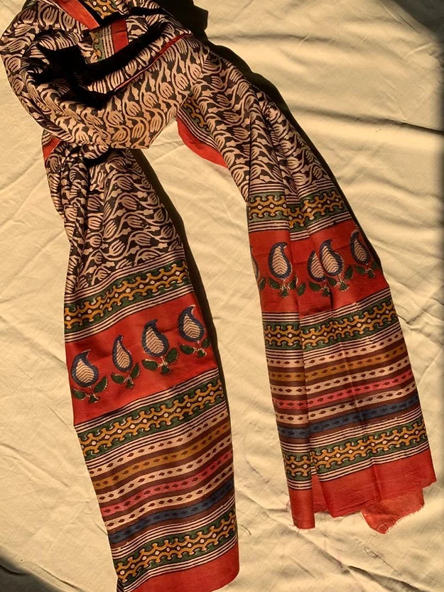 Handblock printed dupatta in beautiful block patterns done on a chanderi fabric straight from the artisans of Bagru. Super comfortable and easy to wear. Perfect for day wear or your evening soiree.