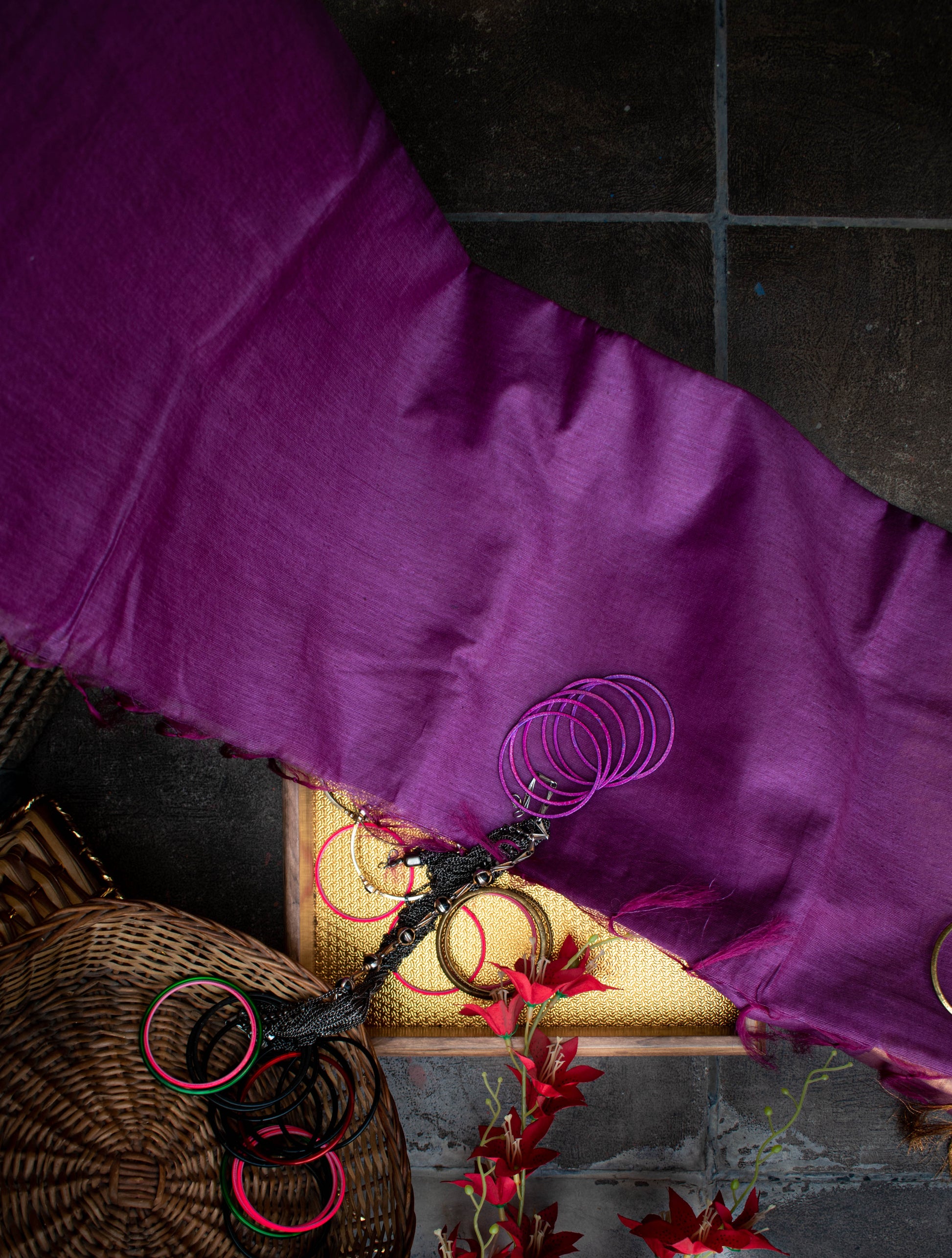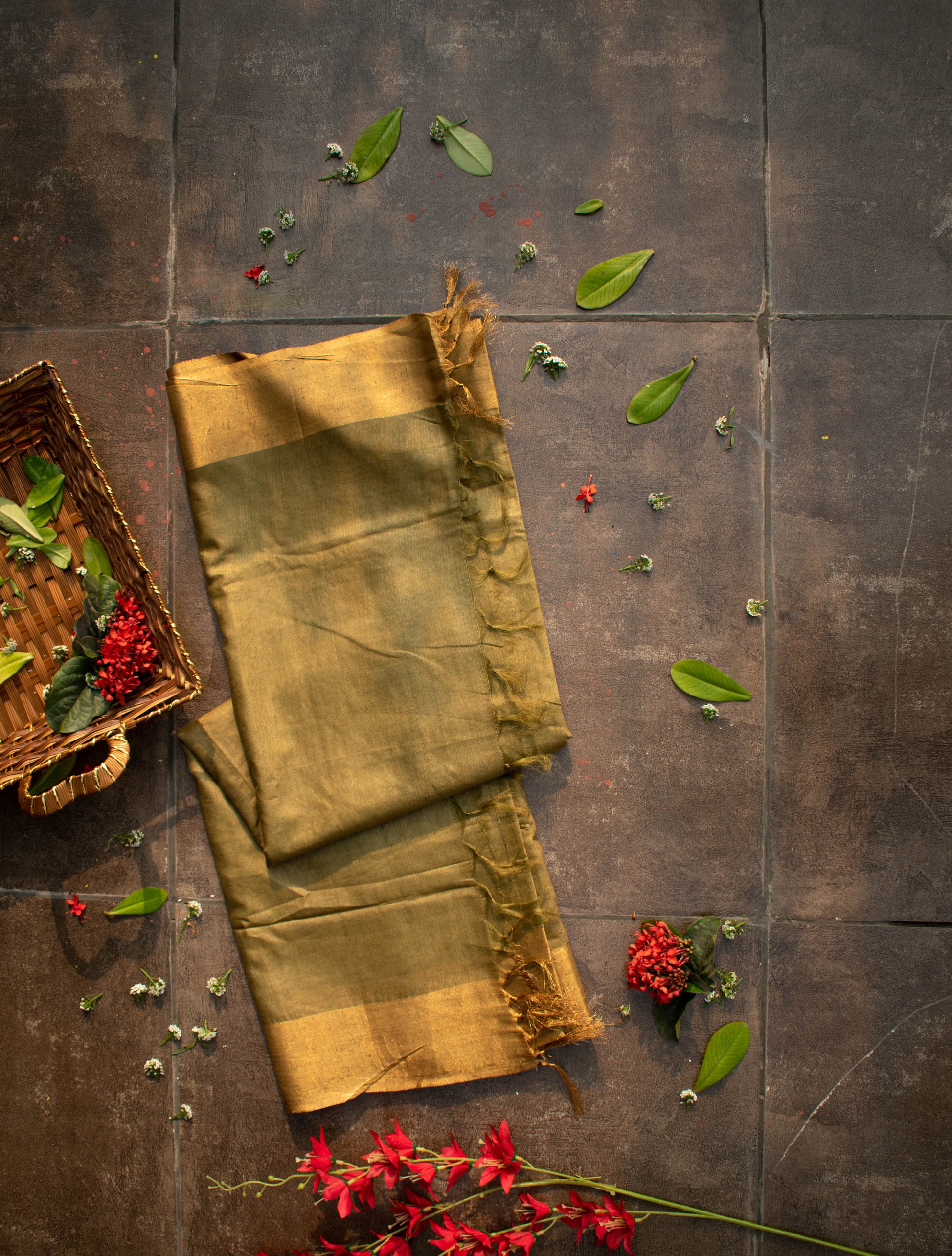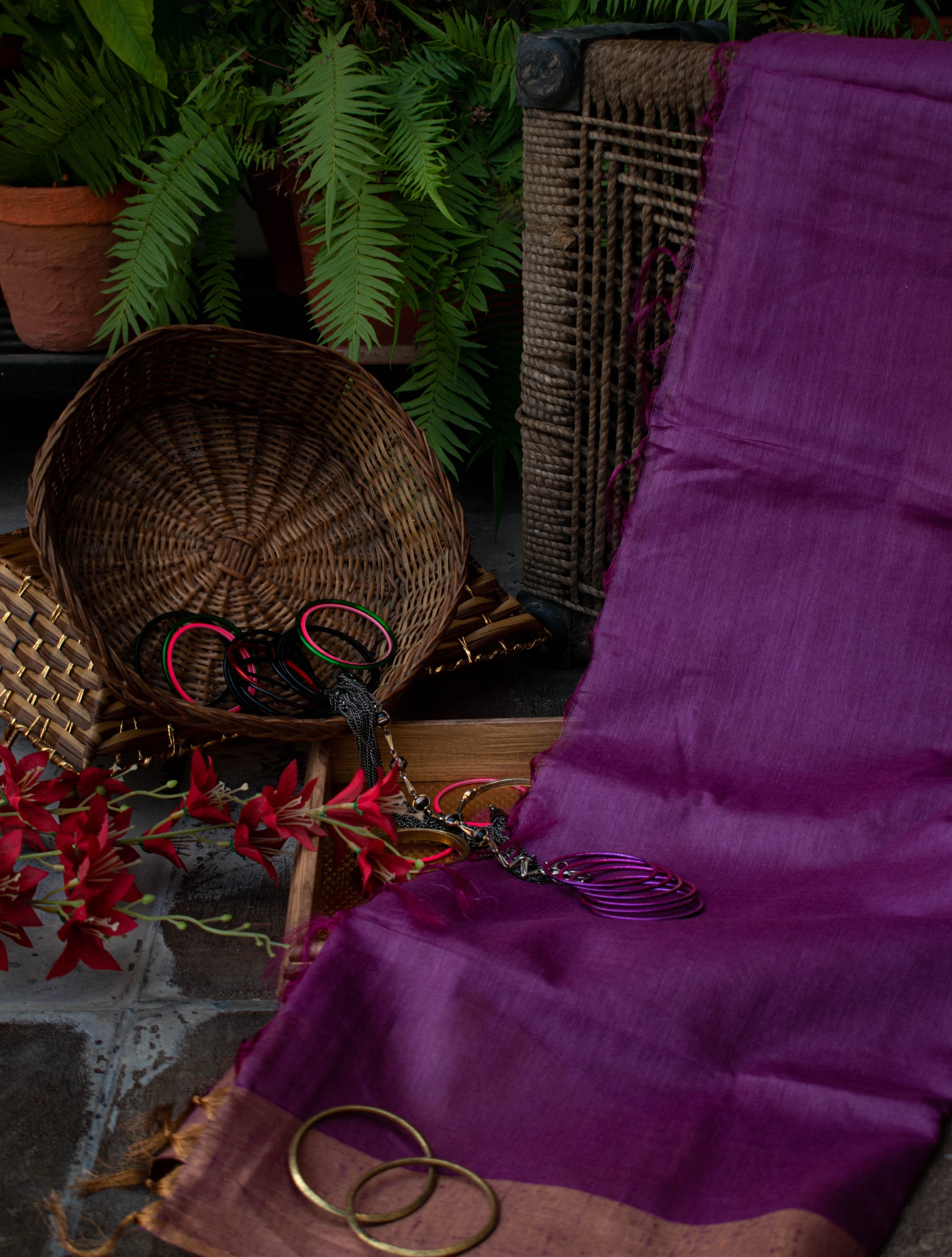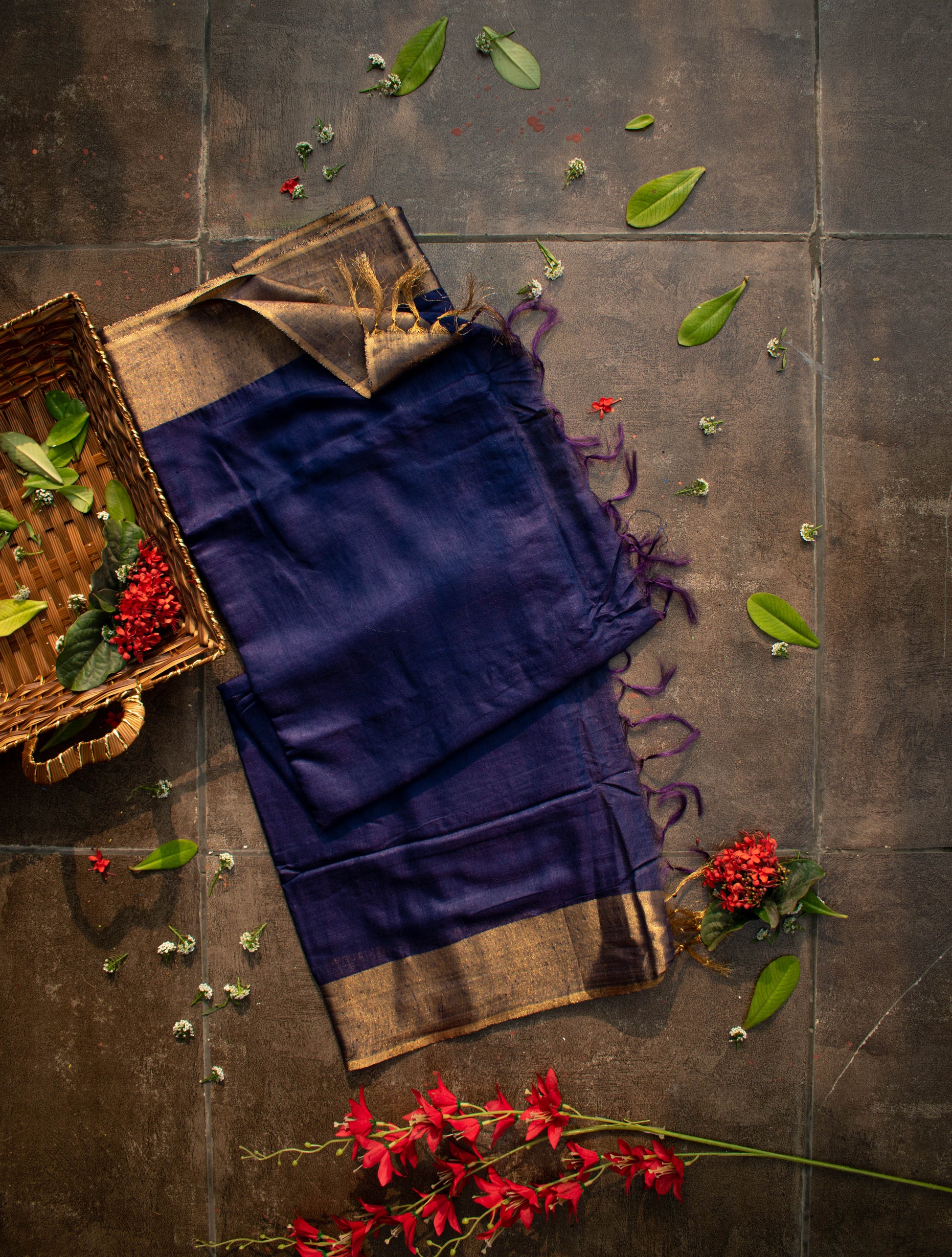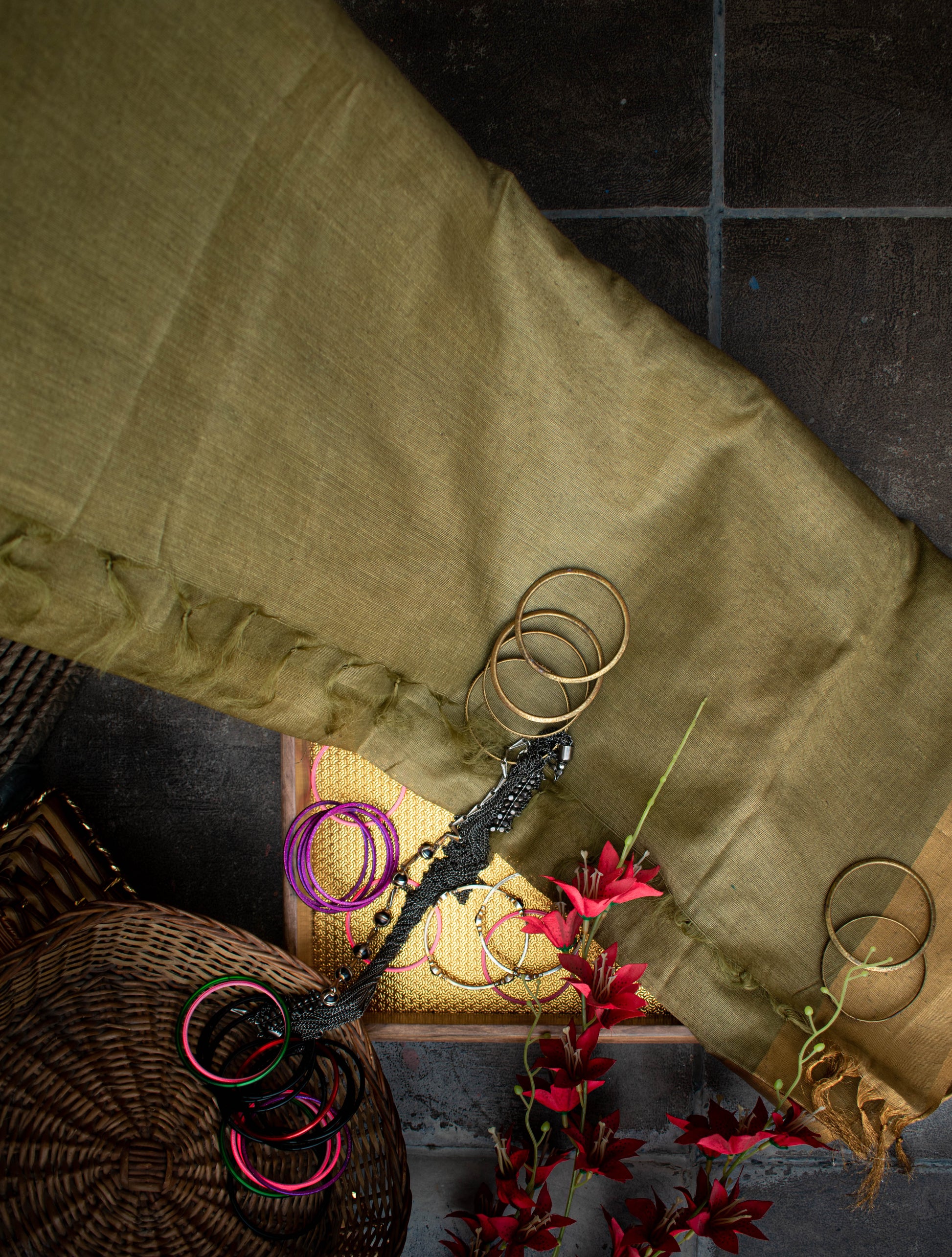 Elegant cotton silk saree with thread tassles in a beautiful colour hue with an even prettier zari border. For those who love subtle elegance. Perfect for light festive wear.