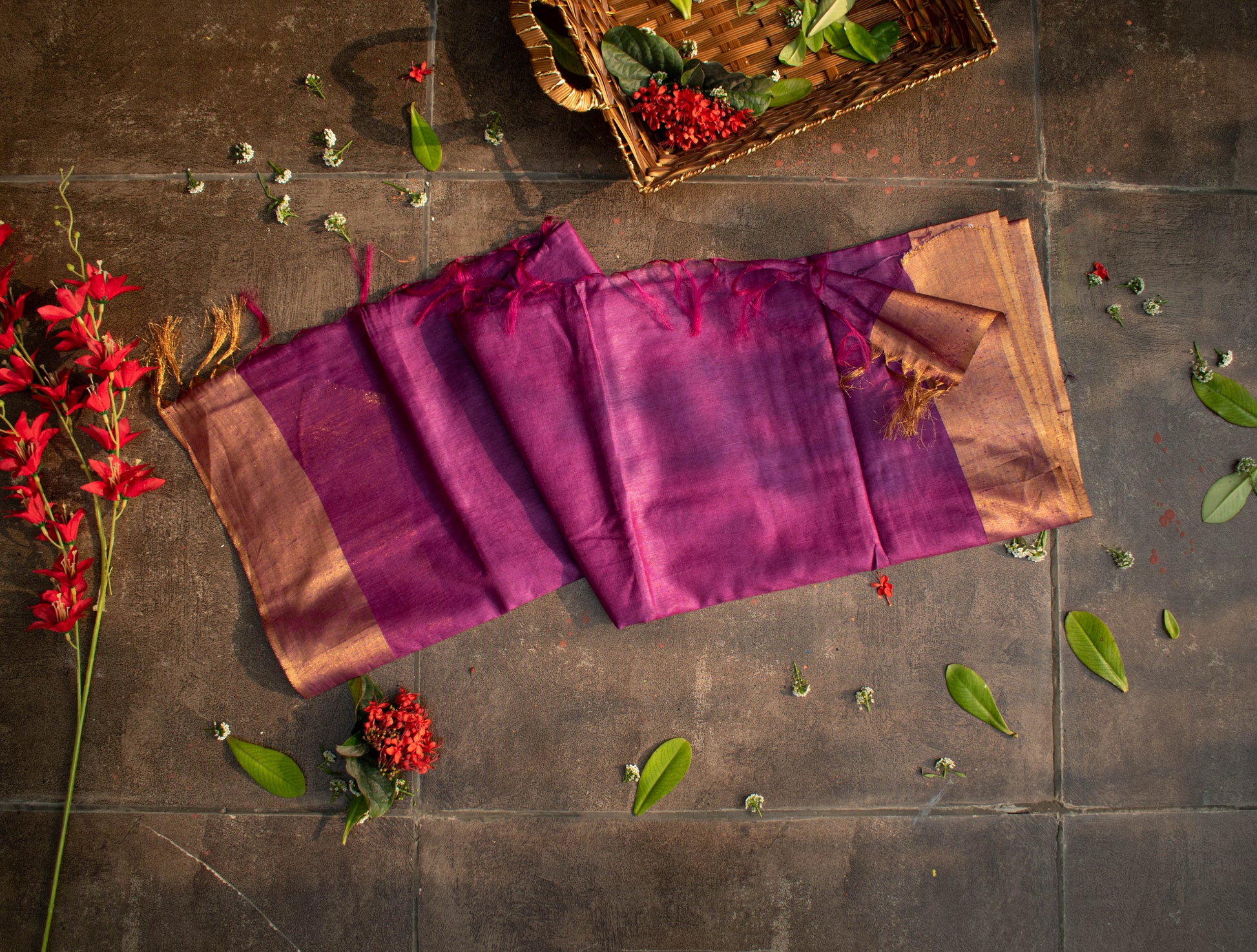 The saris are handwoven and natural dyed and thus may have irregularities that a handloom carries adding to the beauty of the piece.