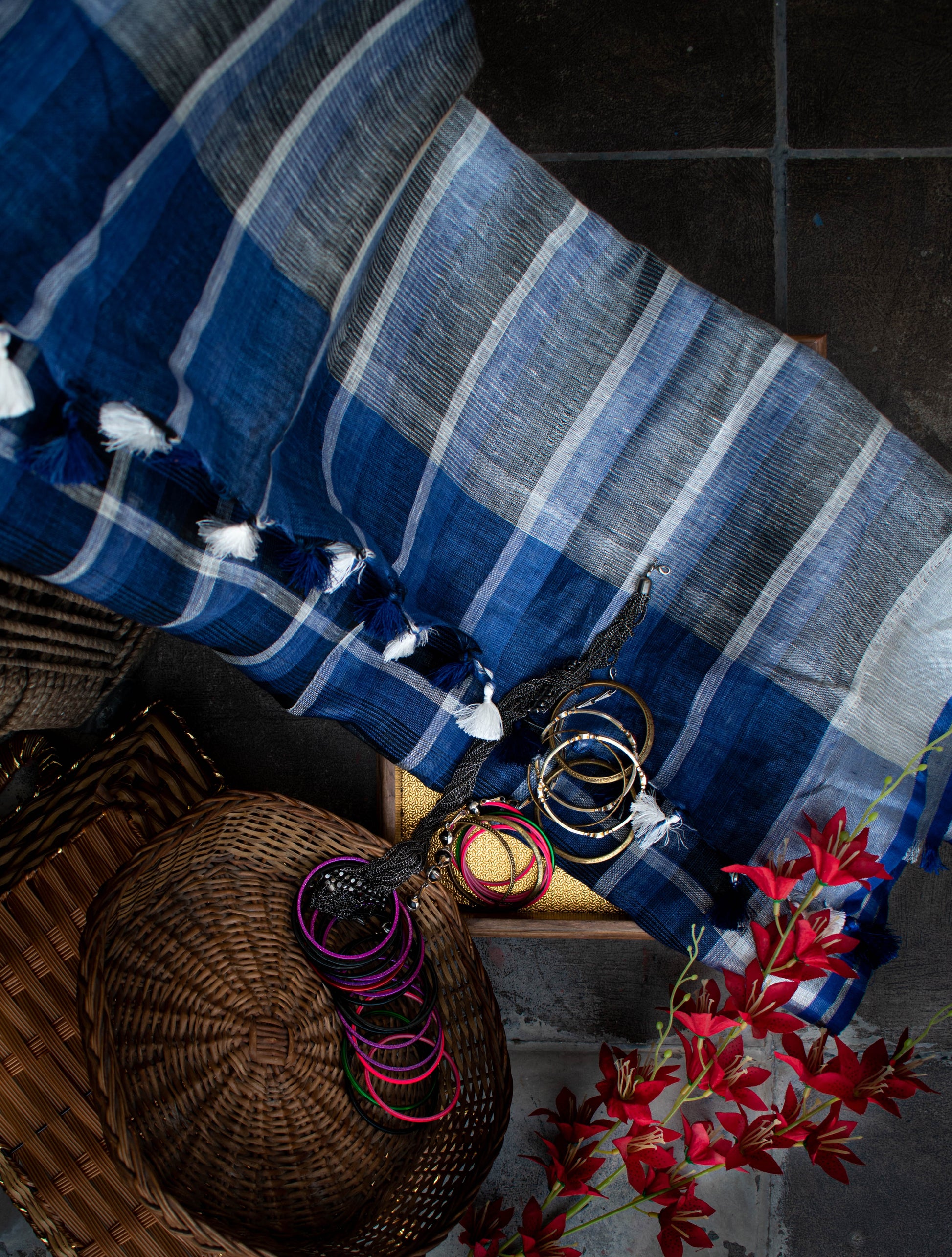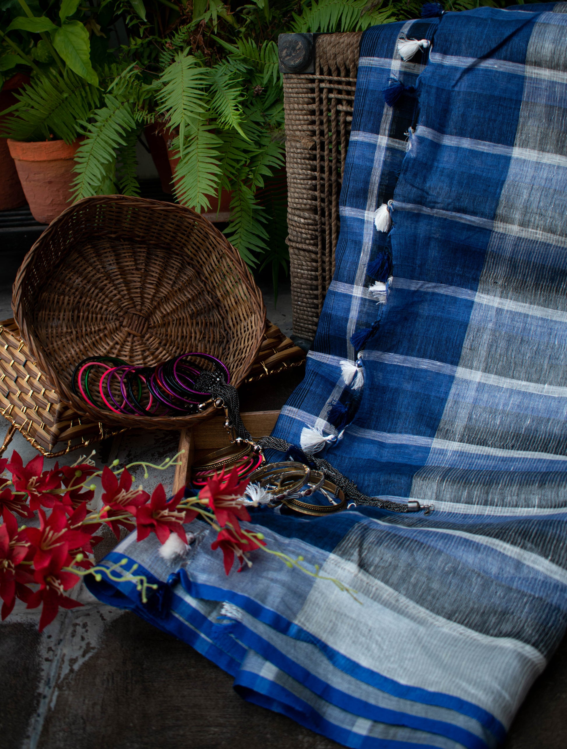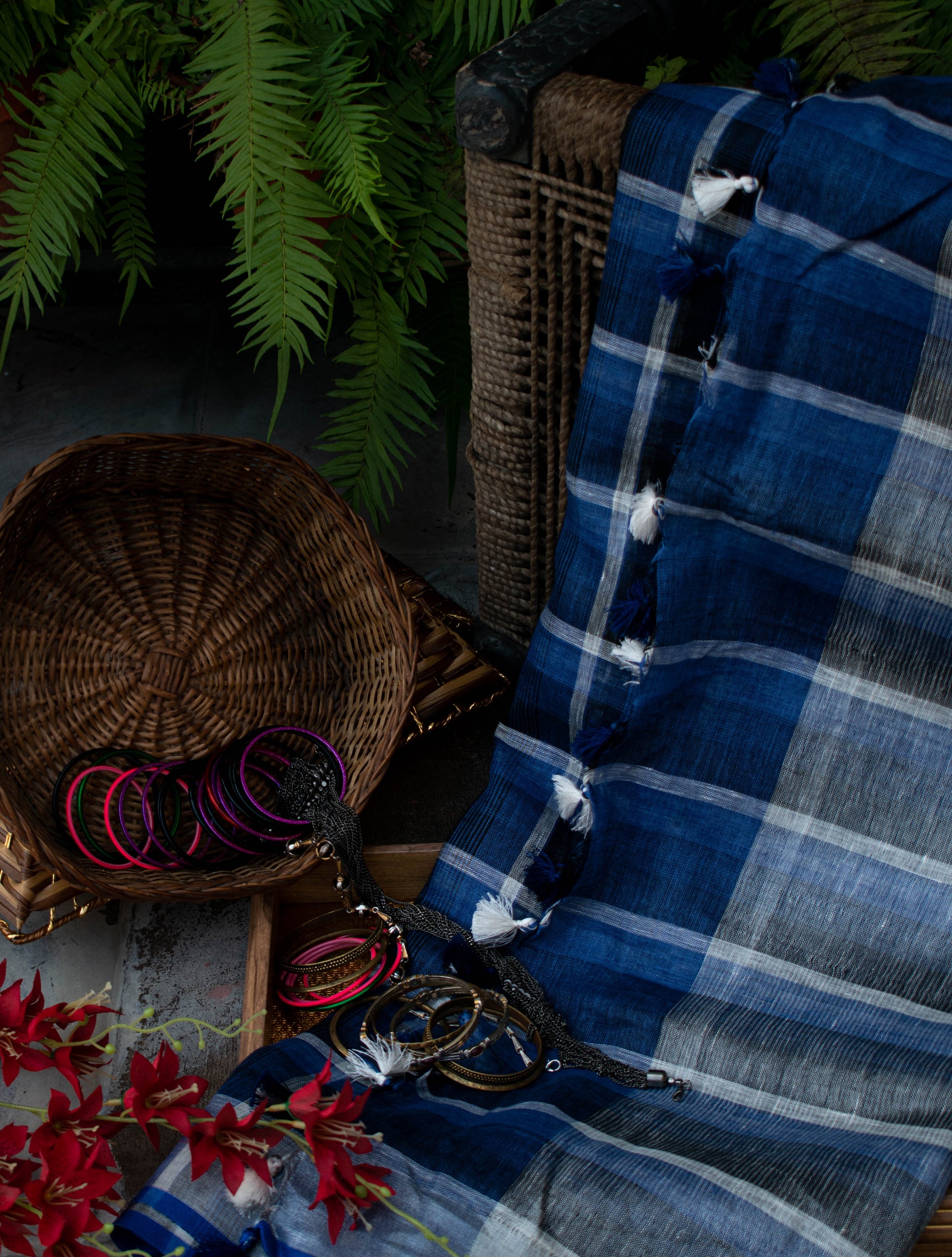 Beautiful pure linen check saree to wear at events, office or even parties.