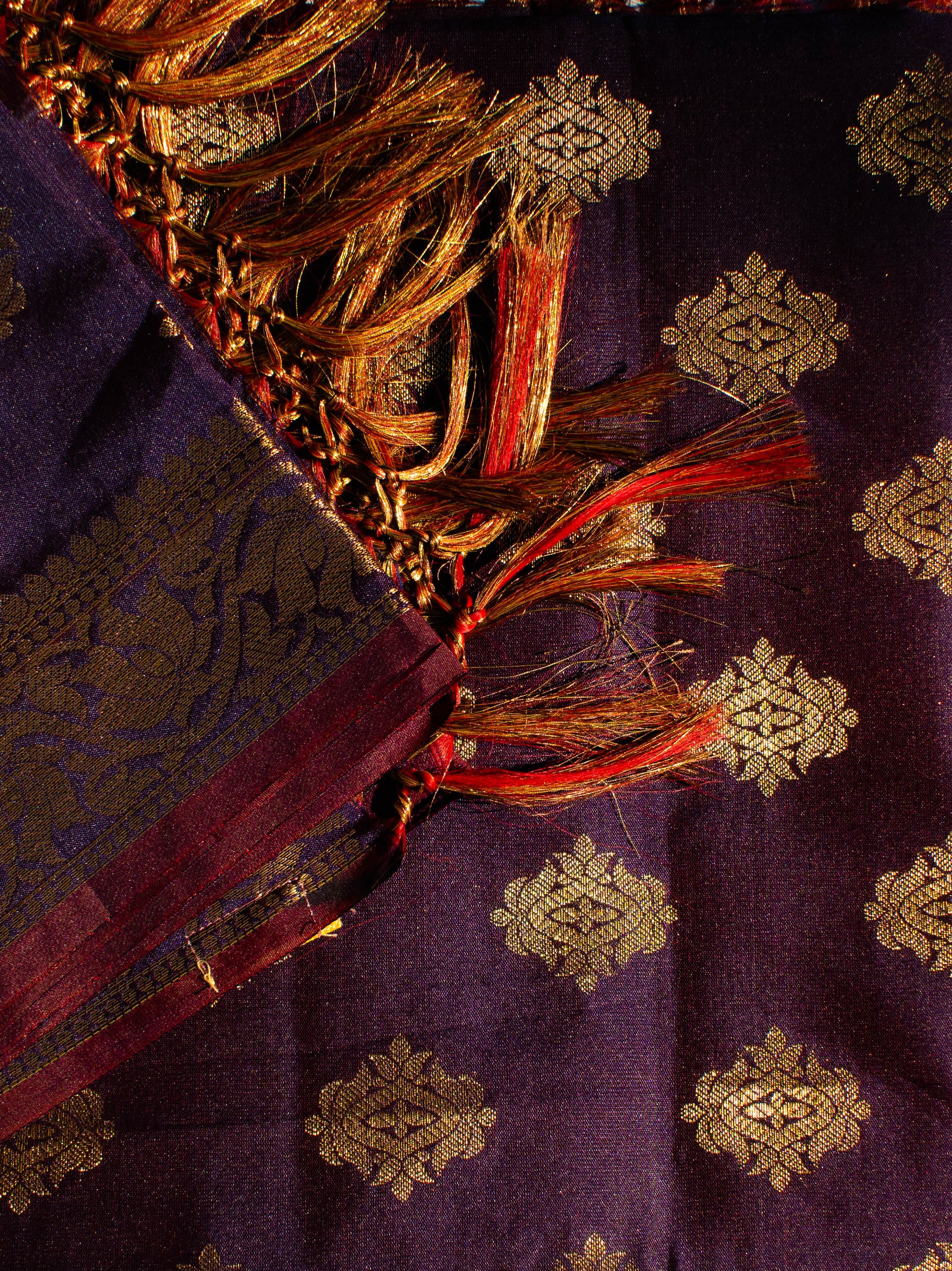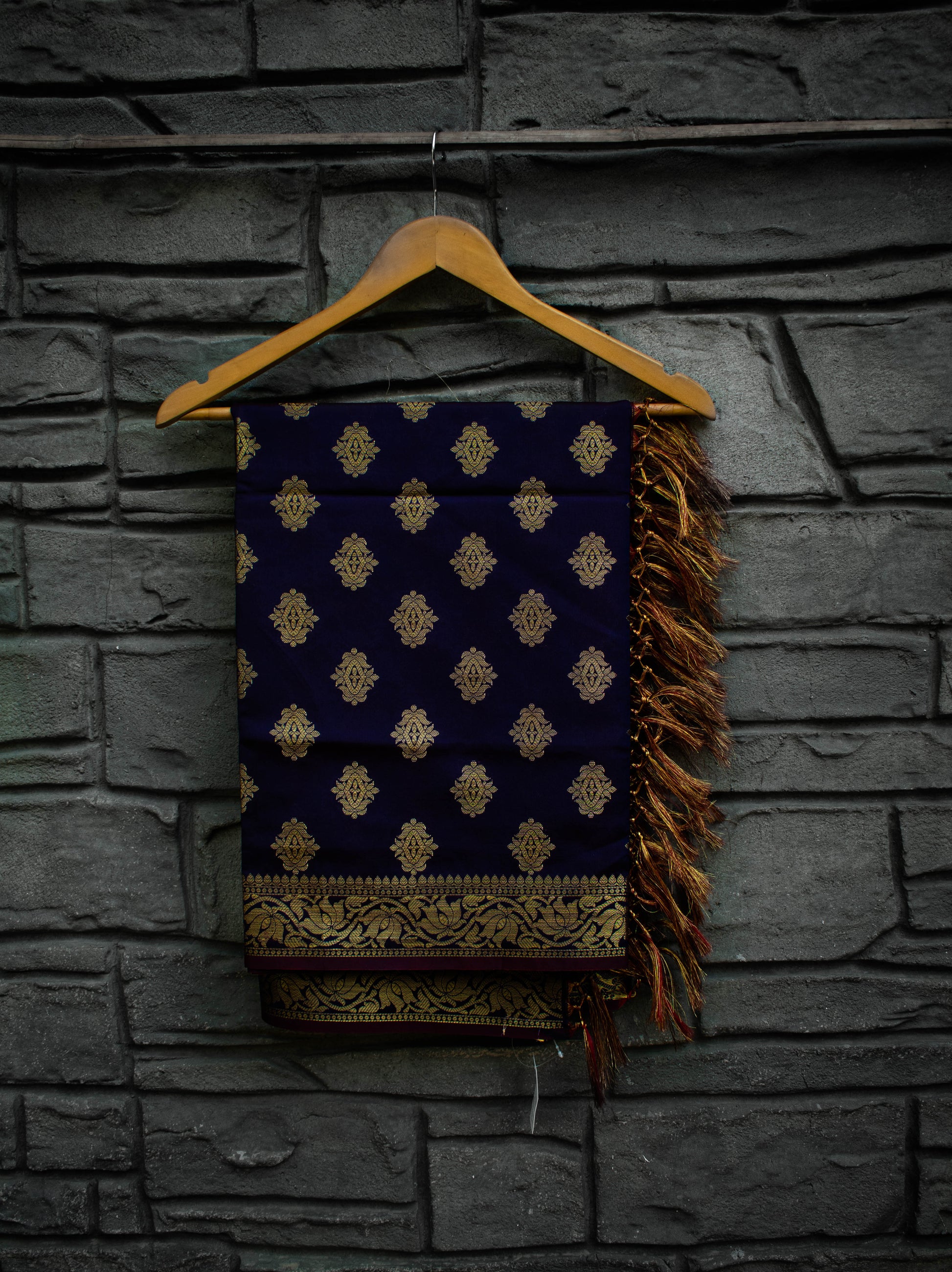 Gorgeous art silk dupattas with golden buttis weaved all over. Adorned with matching tassels for that perfect occasion wear look.