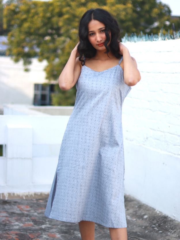 Ultra Chic. Modern. Stylish. Comfortable. These are just a few adjectives to describe this uber-chic slip dress made in 100% cotton with absolutely gorgeous prints. Slid slit adds much glam to the dress. The super-soft cotton makes it perfect for loungewear.