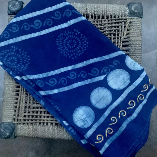 Indigo Diagonal Pattern Block Print MulCotton Dupatta