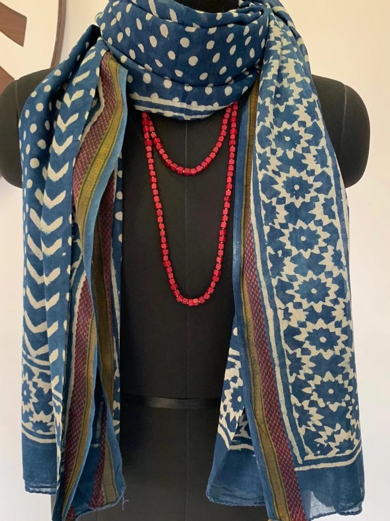 Indigo geometric dabu handblock print stole. Can be worn as a sarong or a headband as well.