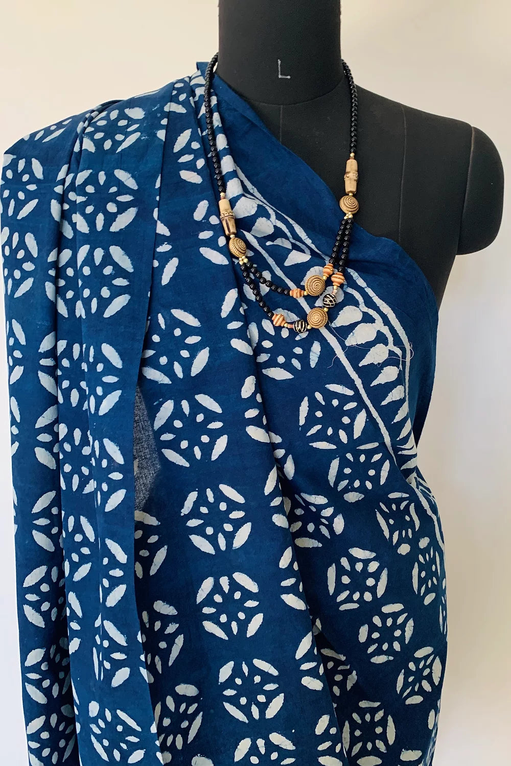 Gorgeous indigo dabu handblock print stole. Tie it with a waist belt for that extra chic look Can be worn as a sarong or a headband as well.