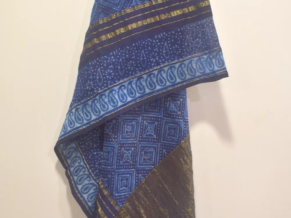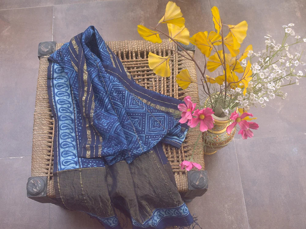 Handblock printed dupatta in beautiful block patterns done on ever gorgeous Maheshwari fabric with zari work straight from the artisans of Akola. Super comfortable and easy to wear. Perfect for occassion wear or upcoming festivities.