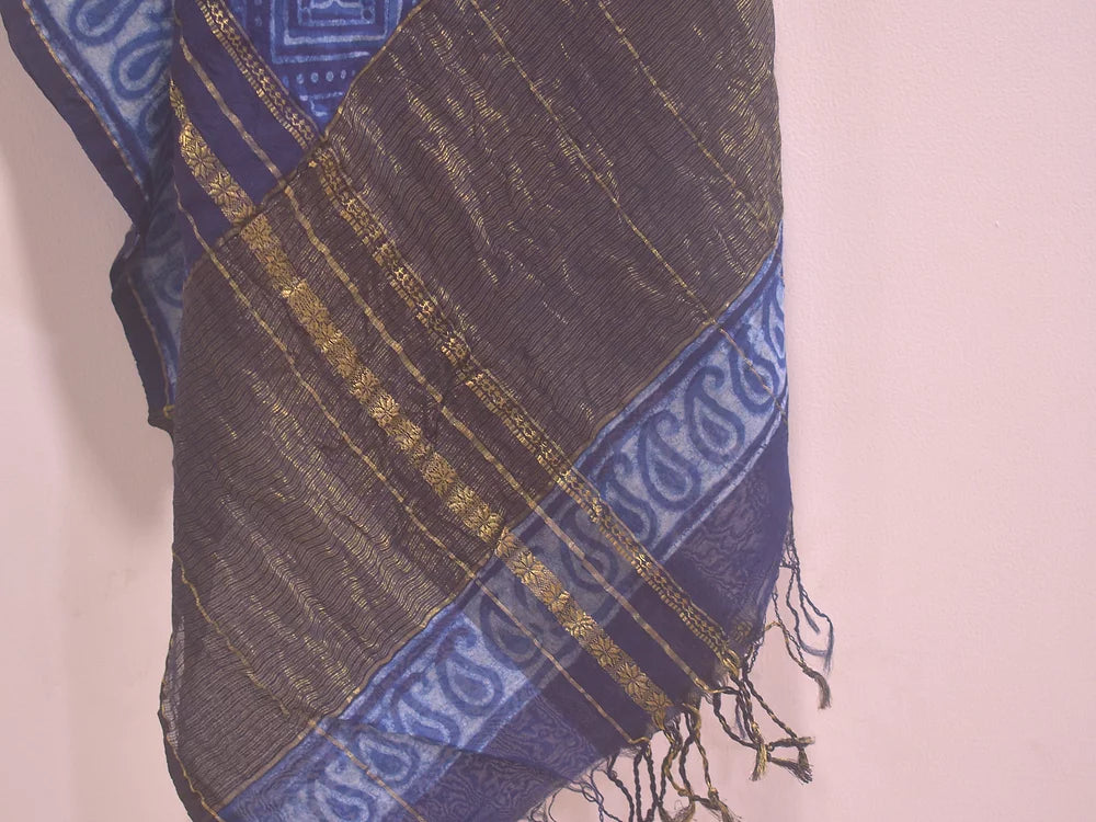 Kashish Jaal Block Print Maheshwari Zari Dupatta