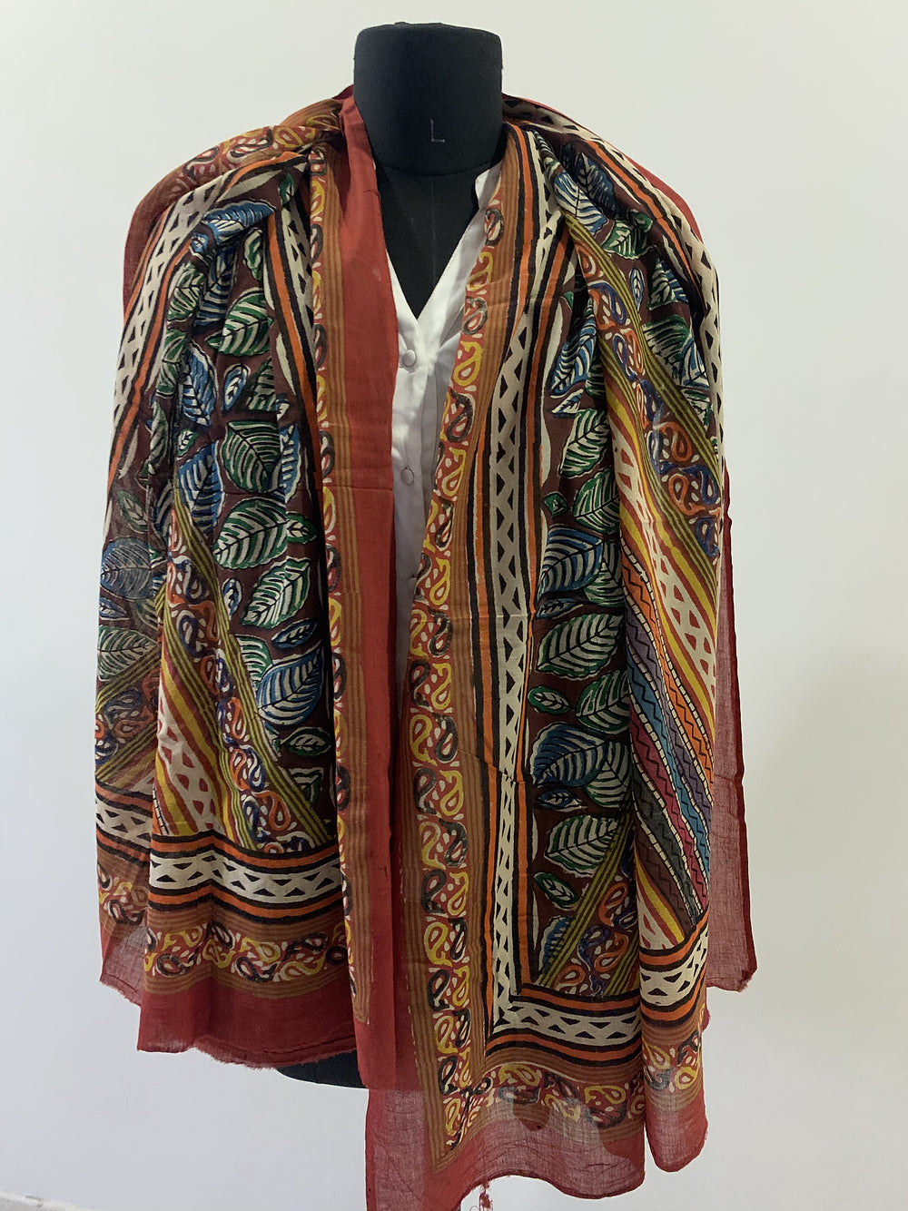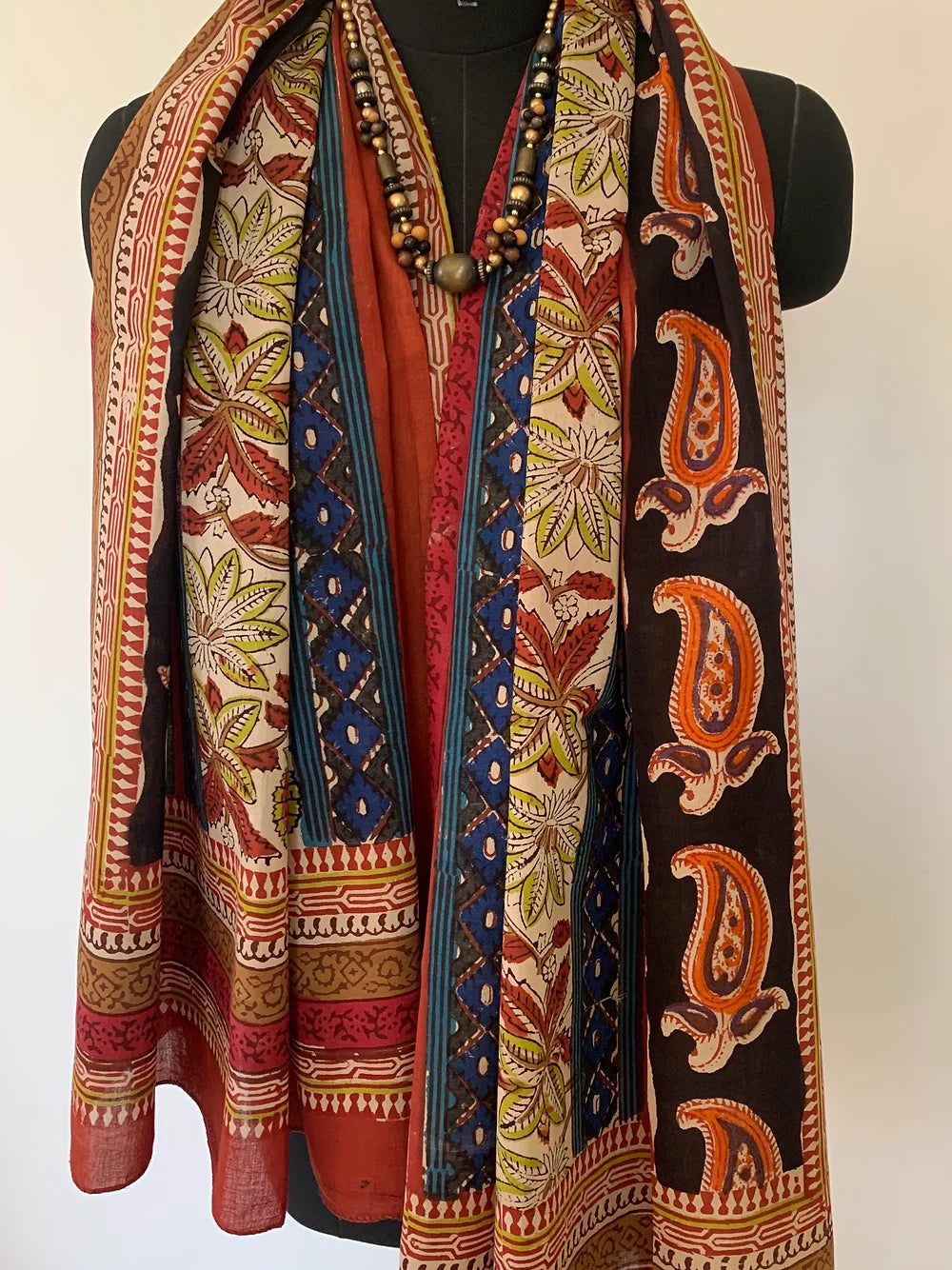 Gorgeous muticolour dabu handblock print stole. Tie it with a belt or style with chunky jewellery for that extra chic look. Can be worn as a sarong or a headband as well.