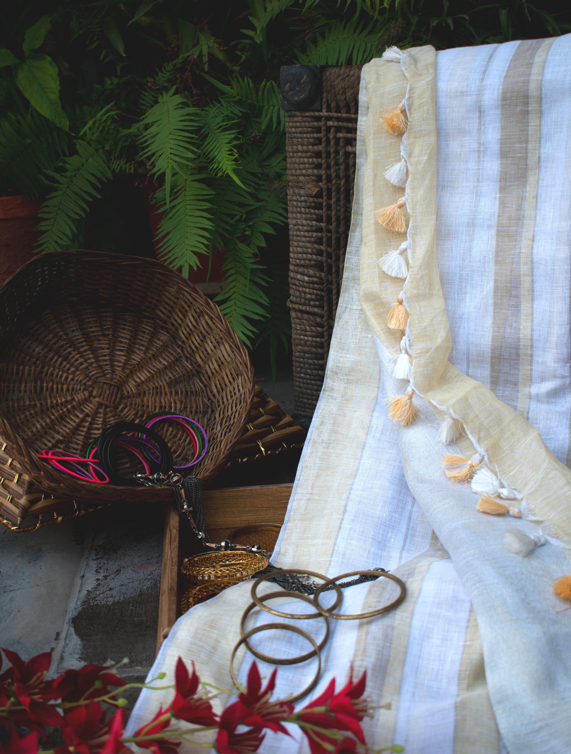 PS: The saris are handwoven and natural dyed and thus may have irregularities that a handloom carries adding to the beauty of the piece.