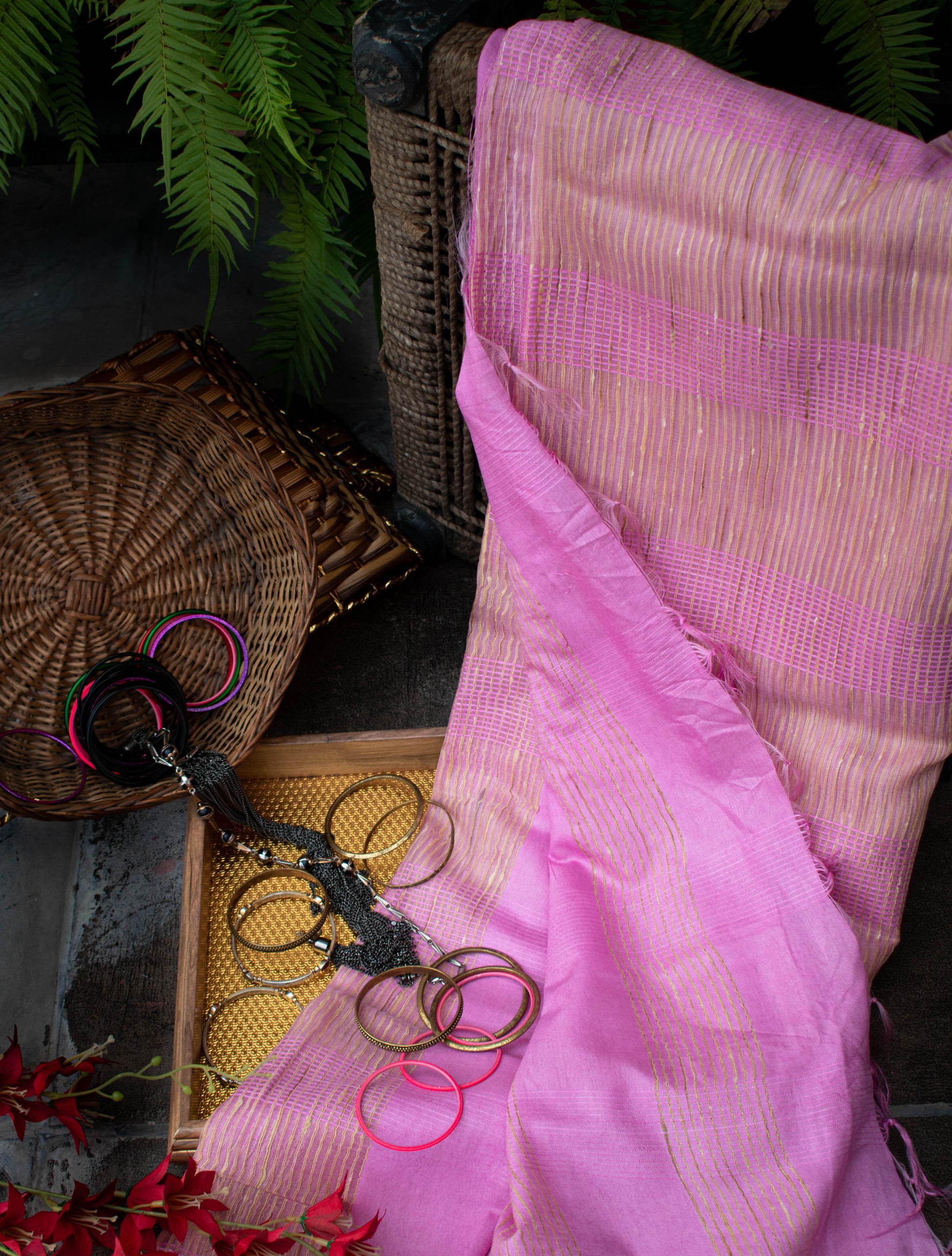 A handloom saree in a gorgeous pinkish purple is a perfect wear for that minimalist elegant look. For days when you want to try but not too hard.