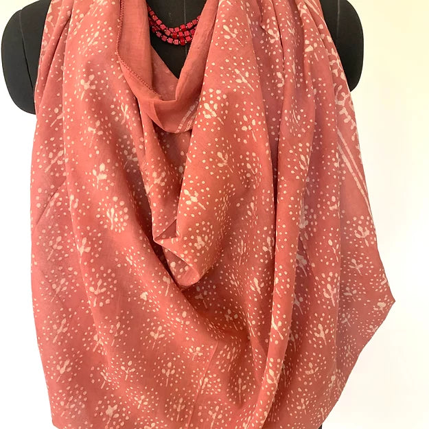 Pink and white dabu handblock print stole. Can be worn as a sarong or a headband as well.