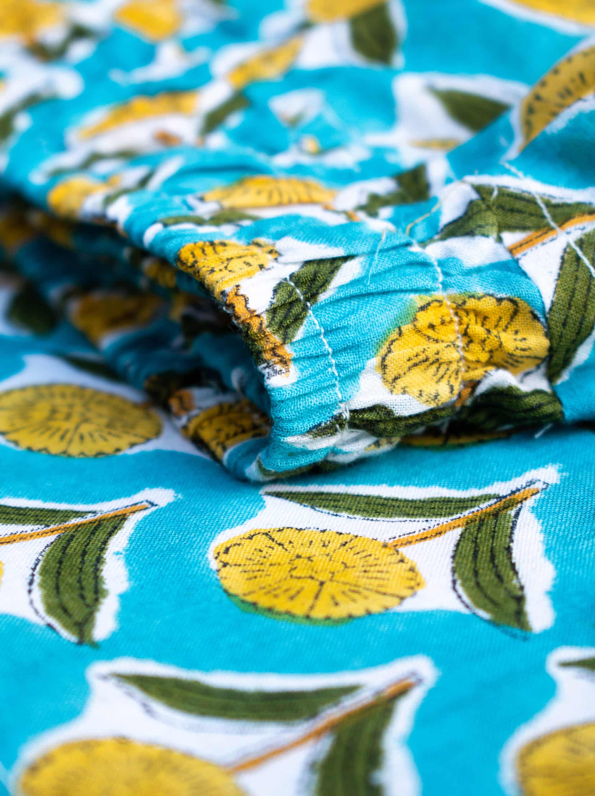 The gorgeous design is hand-block printed by talented artisans in Jaipur, Rajasthan.