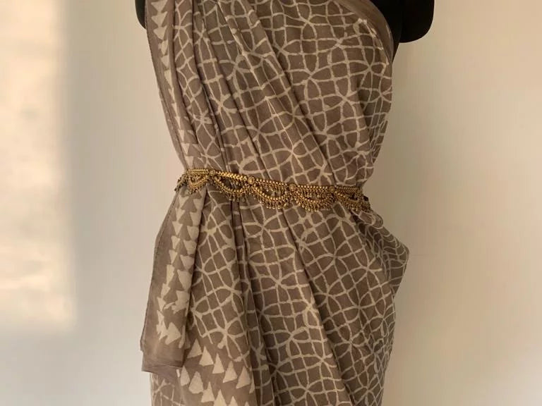 Grey and white dabu handblock print stole. Can be worn as a sarong or a headband as well.